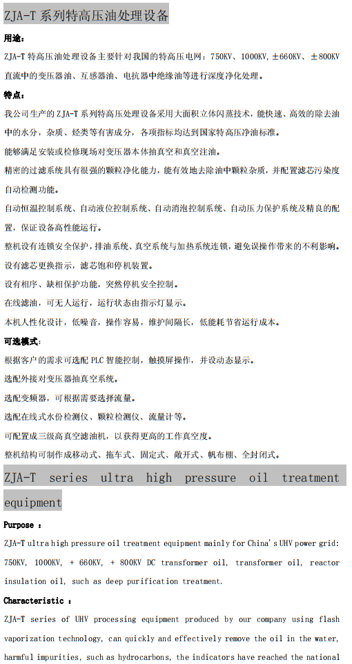 ZJA-T系列特高壓油處理設(shè)備