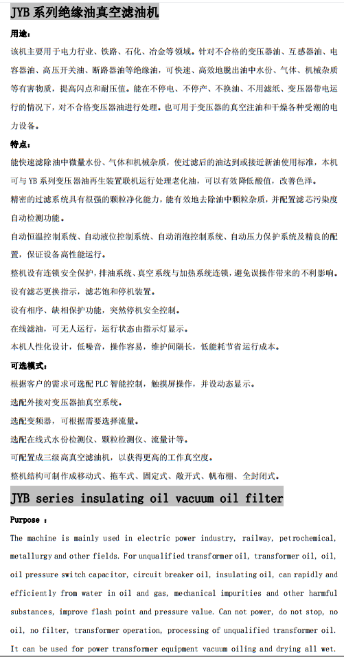 JYB系列絕緣油真空濾油機