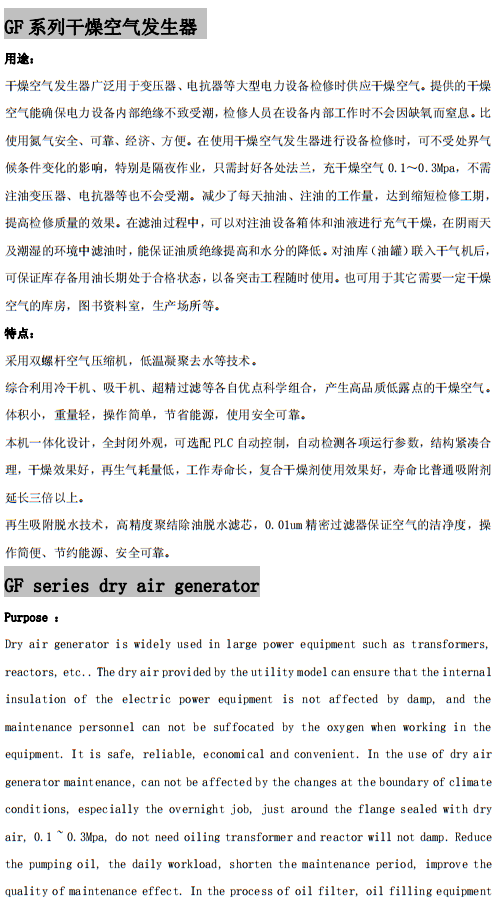 GF系列干燥空氣發(fā)生器