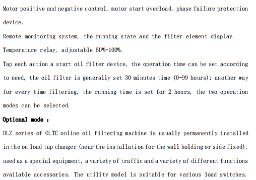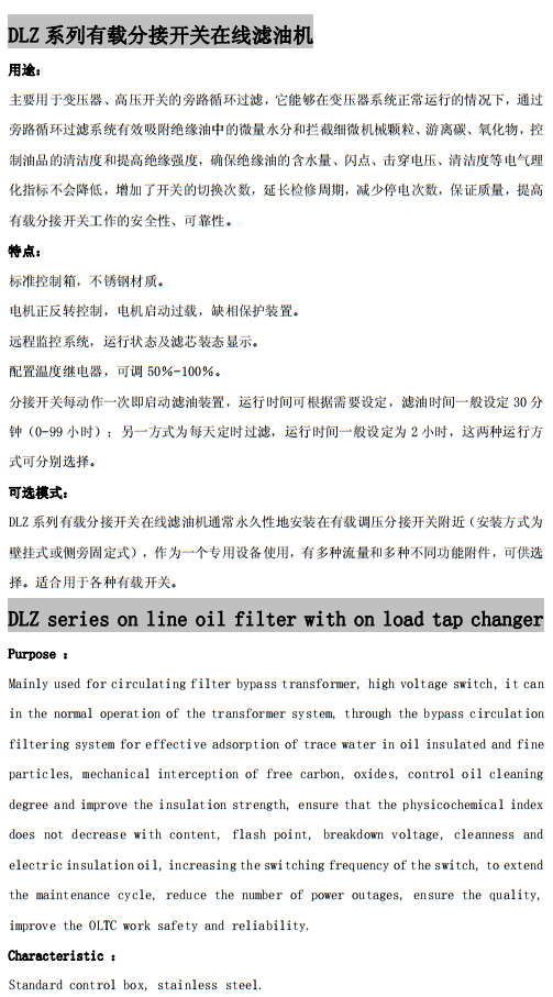 DLZ系列有載分接開關(guān)在線濾油機