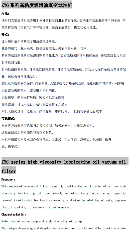 ZYG系列高粘度潤(rùn)滑油真空濾油機(jī)
