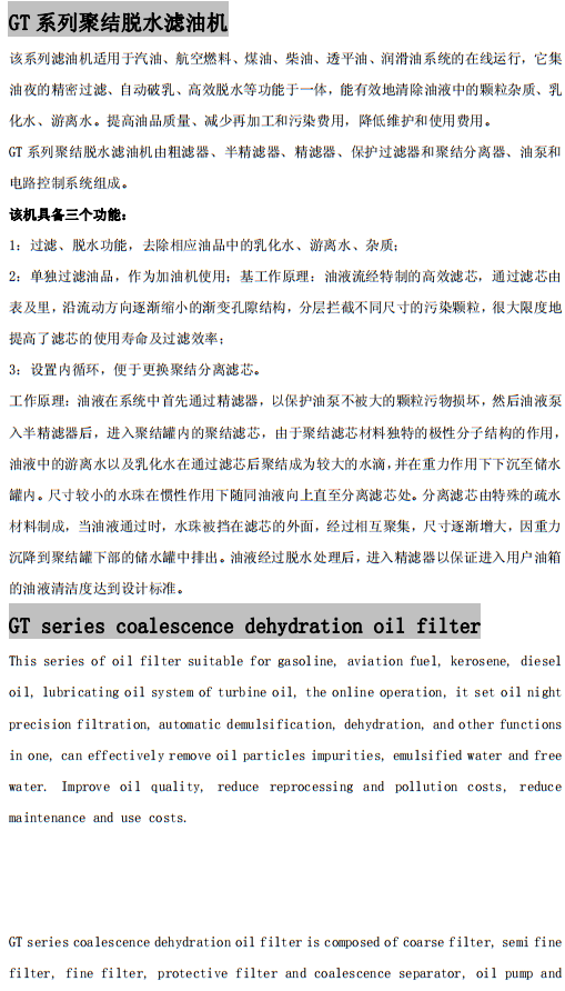 GT系列聚結(jié)脫水濾油機(jī)