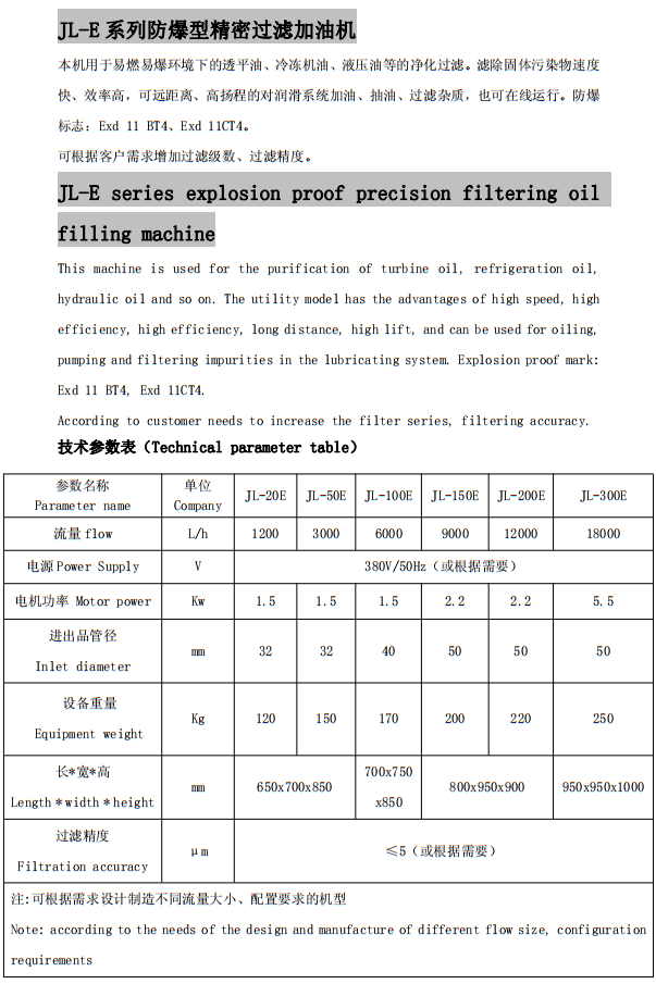 JL-E系列防爆型精密過濾加油機(jī)