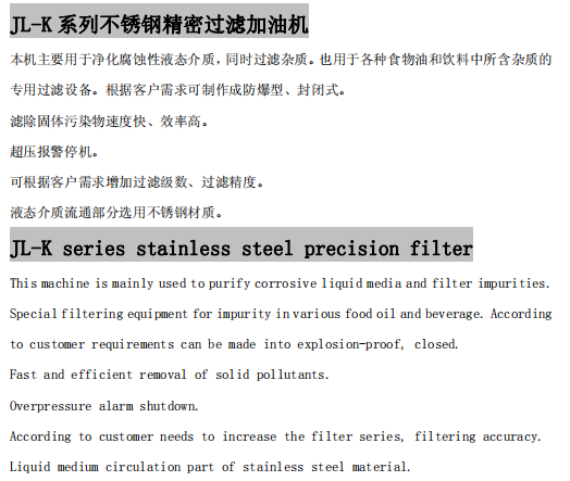 JL-K系列不銹鋼精密過濾加油機